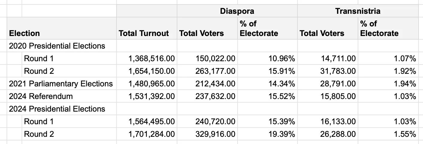Primul lucru de reținut când vine vorba de orice sondaj de opinie în Moldova este cine este lăsat pe dinafară. Mai exact, diaspora și locuitorii din Transnistria. Nu vorbim de un număr nesemnificativ de oameni, după cum reiese din cifrele de participare la ultimele alegeri: